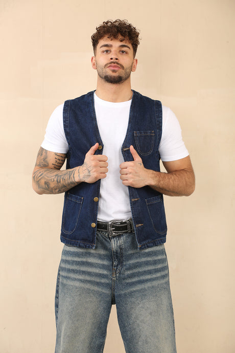 £14.45£17.00Unit price /UnavailableCotton Denim Waistcoat With Pockets (Dark Blue)