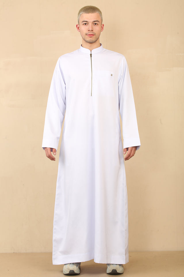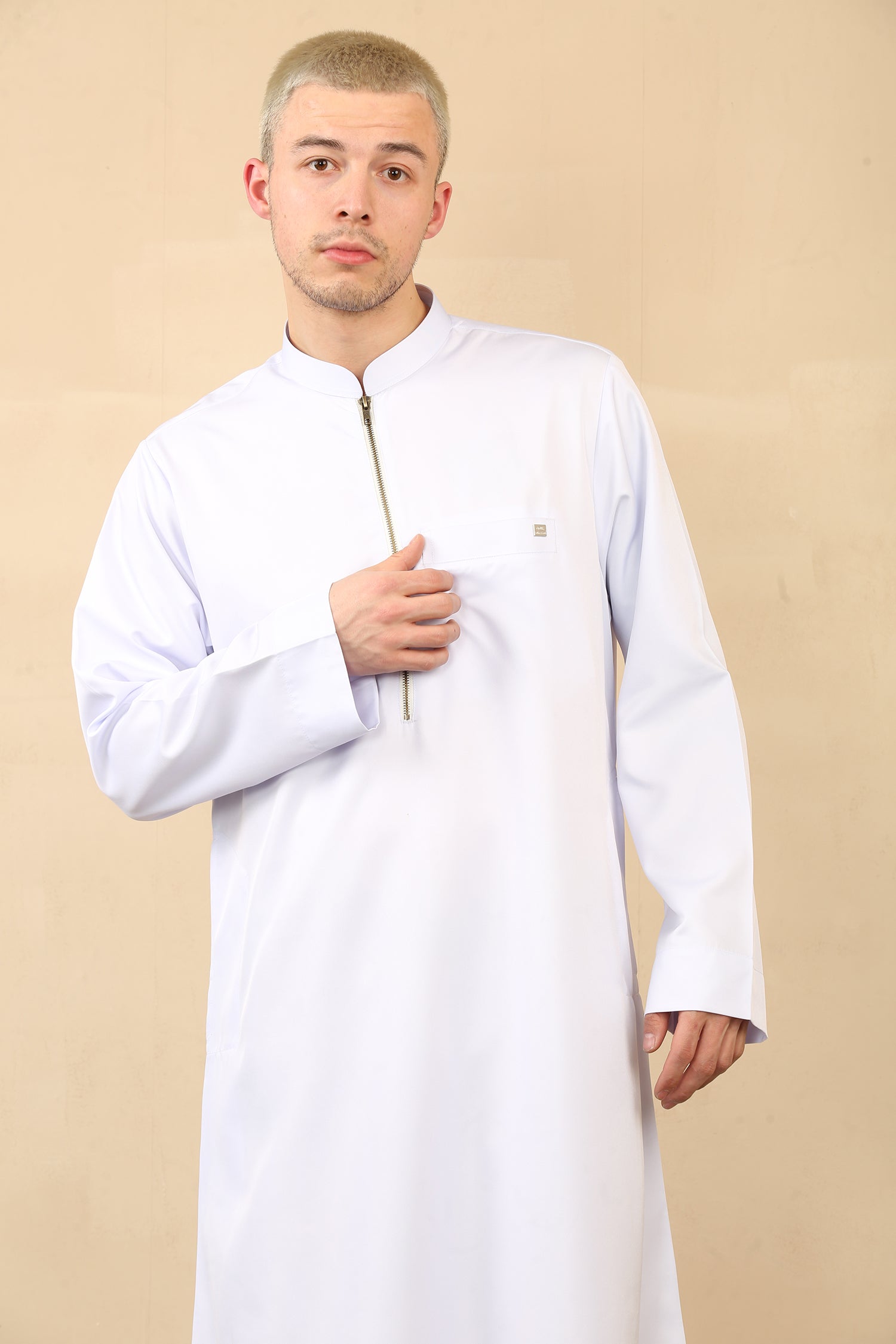 Men's Kuwaiti Matt Finish Zipper Jubba (White)