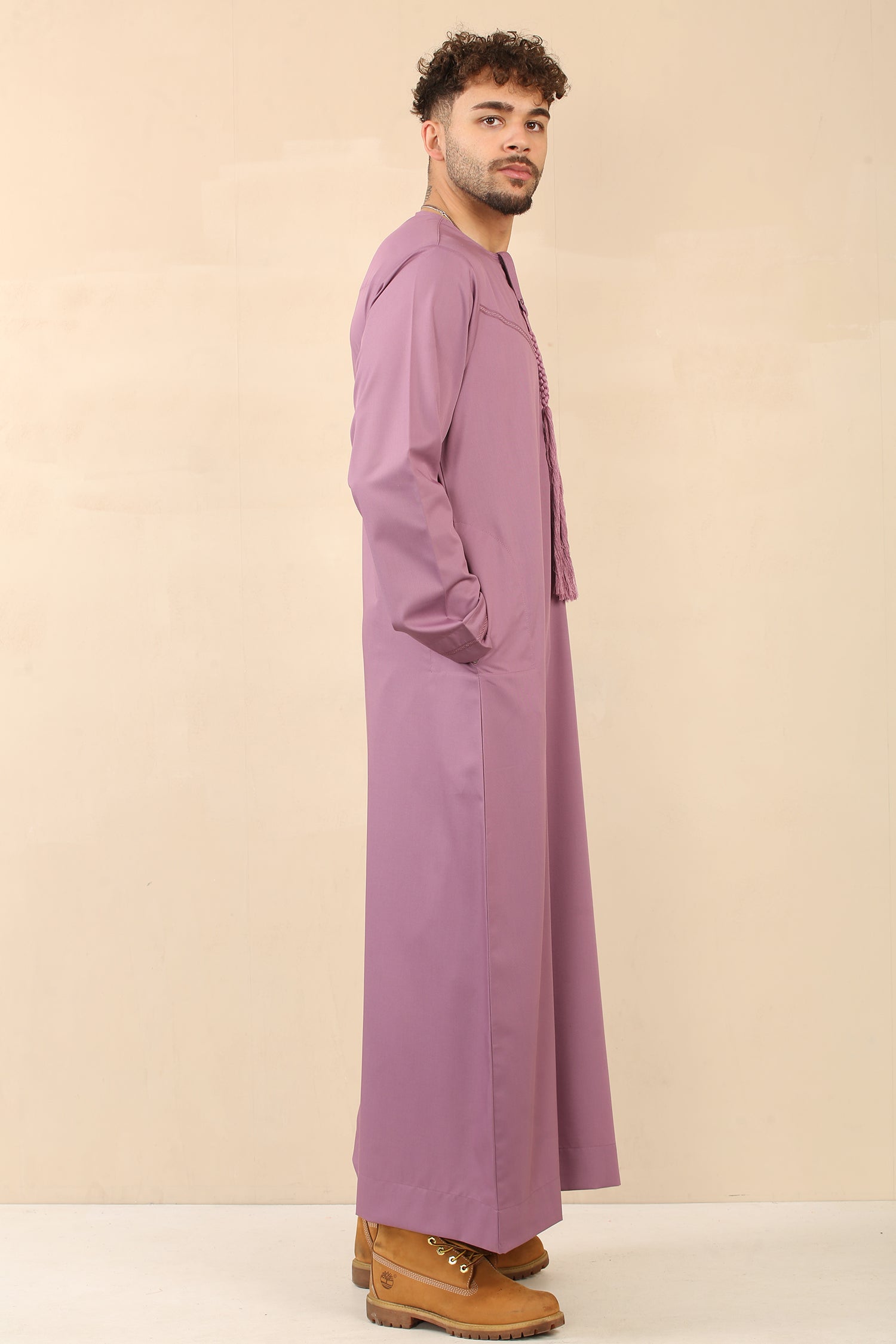 Men's Emirati Embroidered Cotton Zipper Jubba (Mauve)