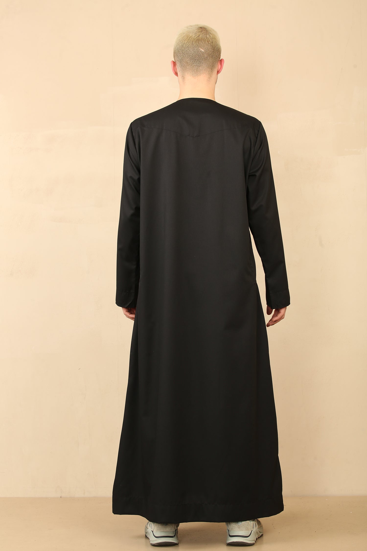 Men's Emirati Embroidered Cotton Zipper Jubba (Black)