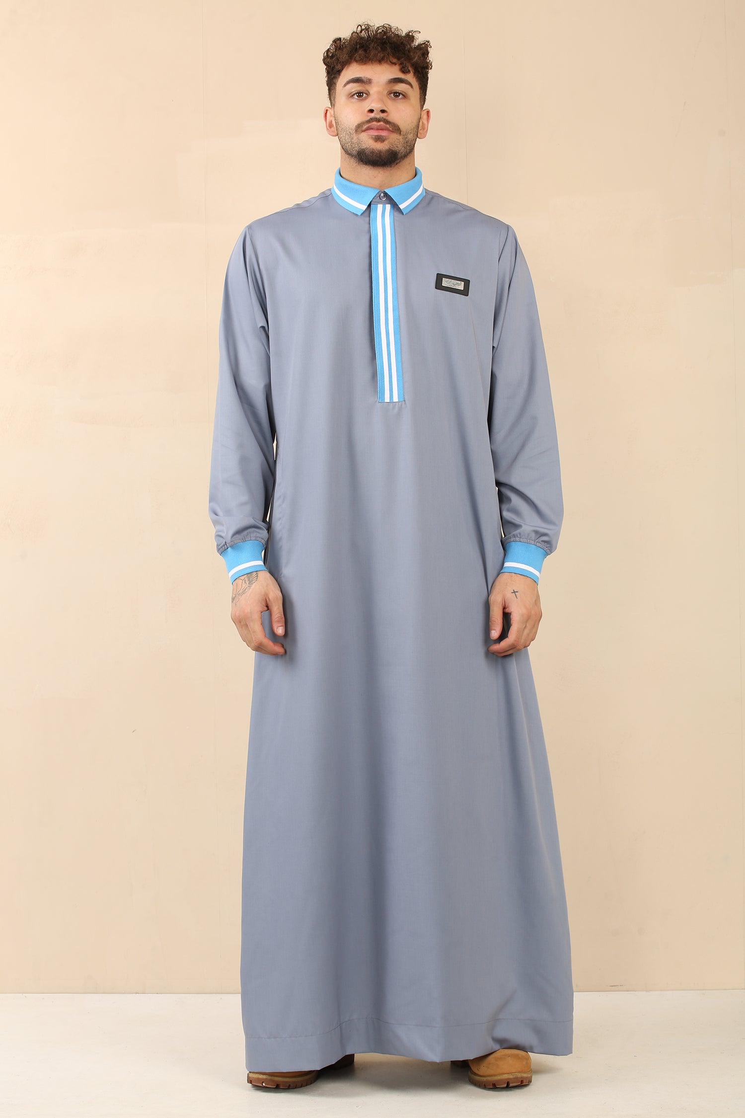Men's Polo Collar Viscose Jubba (Light Grey)